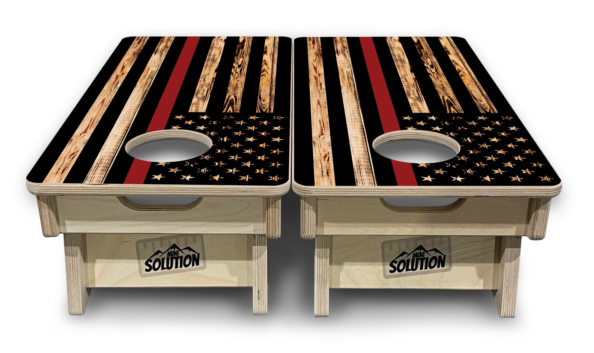 Mini Cornhole Boards - Blue & Red Line Burnt Flag