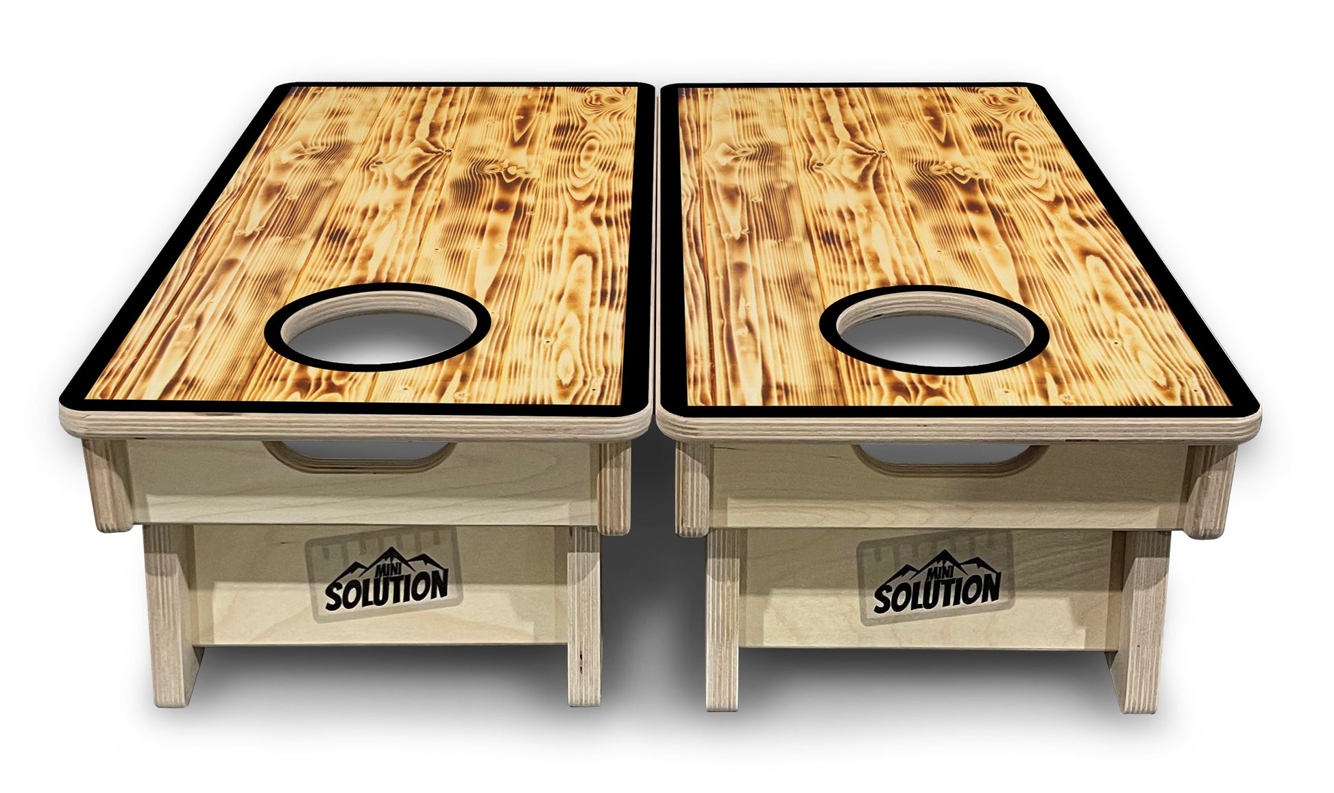 Mini Cornhole Boards - Burnt Wood Black Border